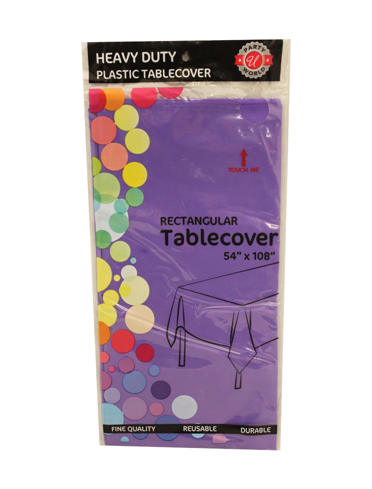 Plastic table covers for parties, picnics and other occasions.