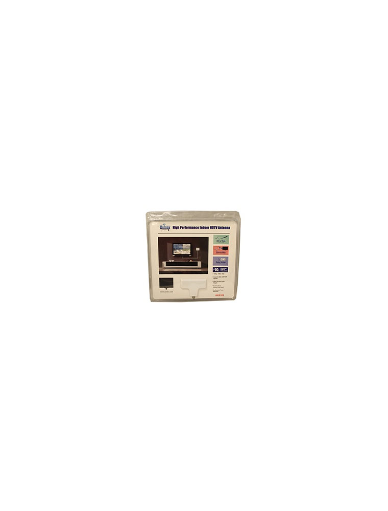 TV Antenna UHF/VHF. Includes: 10 ft Coaxial Cable, 2 Black Push Pins, 2 White Push Pins, 2 Hook & Loop Pads and 1 Manual.